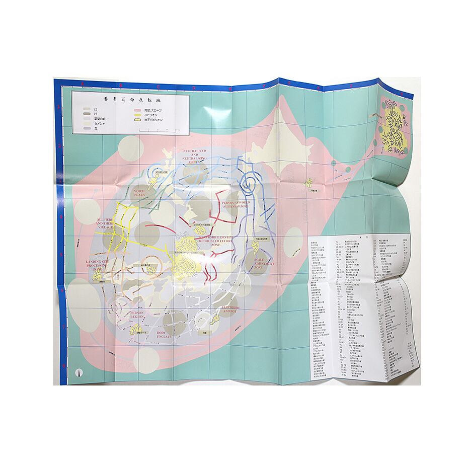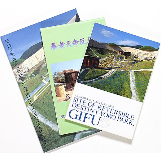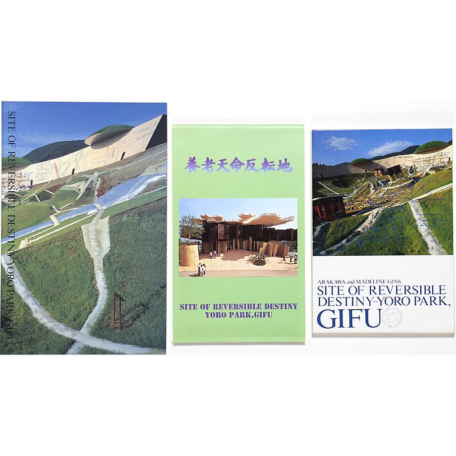 荒川修作とそのパートナーで詩人のマドリン・ギンズが手がけた養老天命反転地のカタログとマップとポストカードの3点セット。