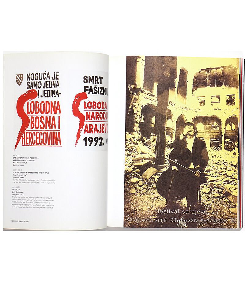 1992年から1995年にかけてのボスニア・ヘルツェゴビナ紛争下において、その多くはセルビア人勢力の民族浄化的圧政に抗う目的でボスニアのアーティストやグラフィックデザイナーたちによって制作されたポスターを180枚以上取り集め紹介する一冊。